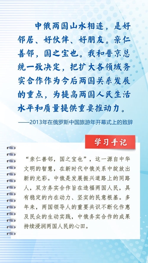 我們一起來學(xué)習(xí)品讀這些飽含哲思的論述,從中感悟新時代中俄關(guān)系在復(fù)雜的外部環(huán)境下堅毅前行之道,感悟習(xí)近平主席作為大黨大國領(lǐng)袖、世界級領(lǐng)袖的時代擔(dān)當(dāng)與天下情懷。