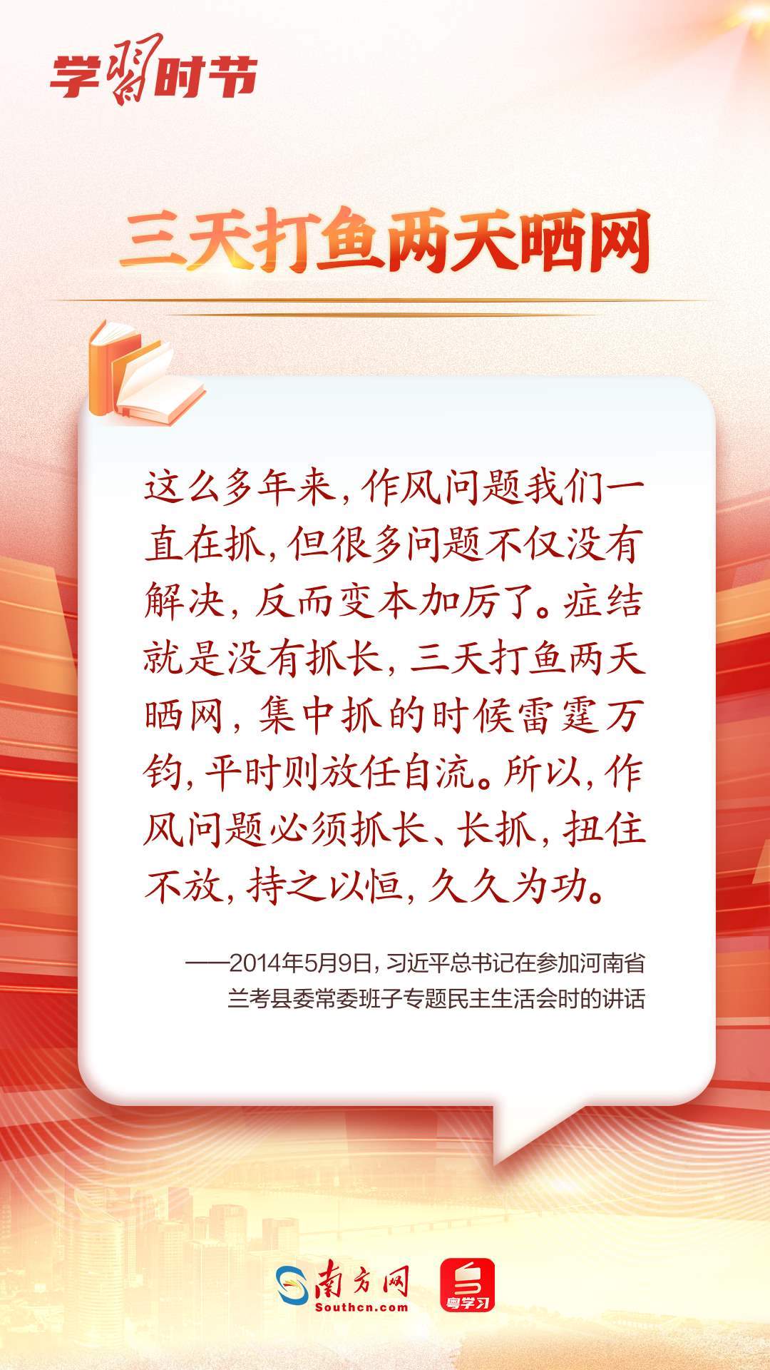 5月16日出版的第10期《求是》雜志發(fā)表中共中央總書記、國家主席、中央軍委主席習(xí)近平的重要文章《鍥而不舍落實(shí)中央八項(xiàng)規(guī)定精神,以優(yōu)良黨風(fēng)引領(lǐng)社風(fēng)民風(fēng)》。文章中,習(xí)近平總書記多次引用古語、諺語、俗語闡釋作風(fēng)建設(shè)要義,讓我們一起來學(xué)習(xí)領(lǐng)會(huì)。
