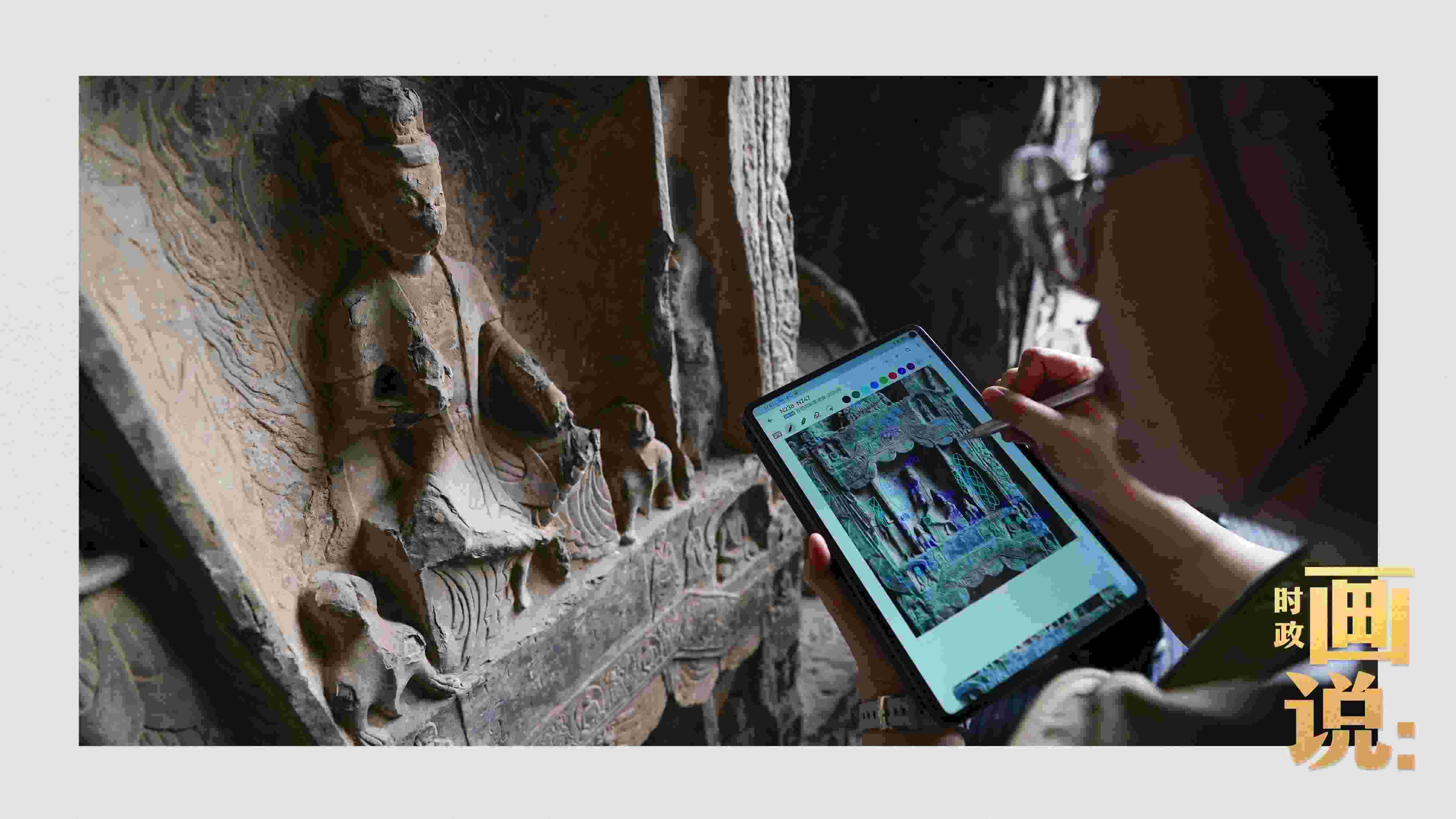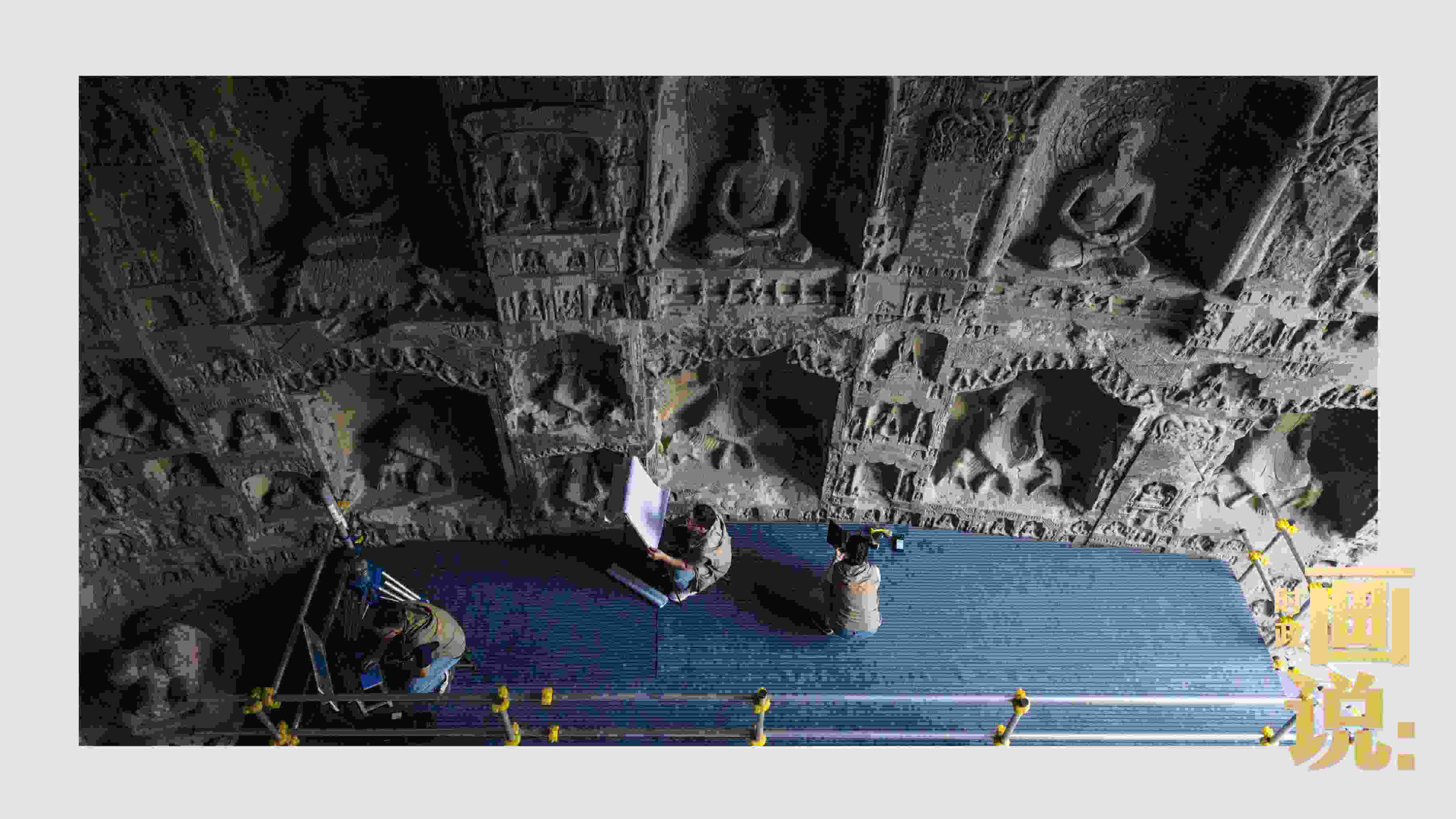 △龍門石窟研究院工作人員在古陽洞使用關(guān)節(jié)臂掃描儀對佛像進(jìn)行數(shù)字化掃描
