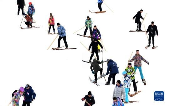 這是人們在阿勒泰市將軍山滑雪場參加毛皮滑雪慶?;顒?2019年1月16日攝)。新華社記者 沙達(dá)提 攝