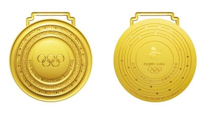 北京冬奧會金牌正面(左)與背面 新華社發(fā)(北京冬奧組委供圖)