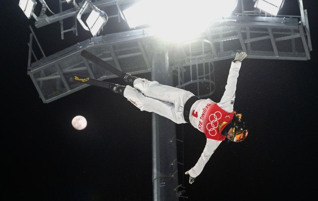 2月14日,北京冬奧會自由式滑雪女子空中技巧決賽,中國隊選手徐夢桃在比賽中。新華社記者肖藝九攝