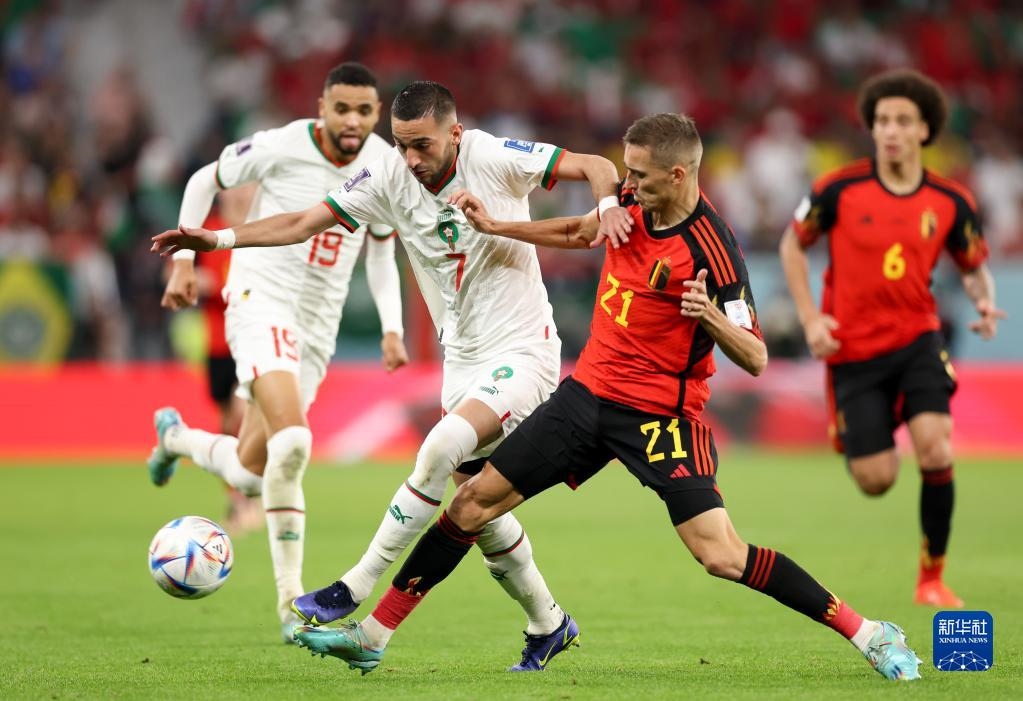 當(dāng)日,在卡塔爾多哈阿圖瑪瑪球場(chǎng)進(jìn)行的2022卡塔爾世界杯足球賽F組比賽中,比利時(shí)隊(duì)以0比2不敵摩洛哥隊(duì)。