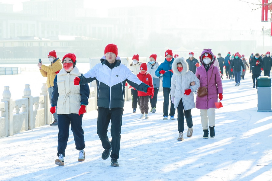 徒步路線沿呼和浩特市小黑河沿線設(shè)置,全長五公里。參與群眾不僅獲得了象征紅火、喜慶的紅帽子、紅手套等紀念品,還紛紛在新春背景墻下拍照打卡,表達對新年的祝福。
