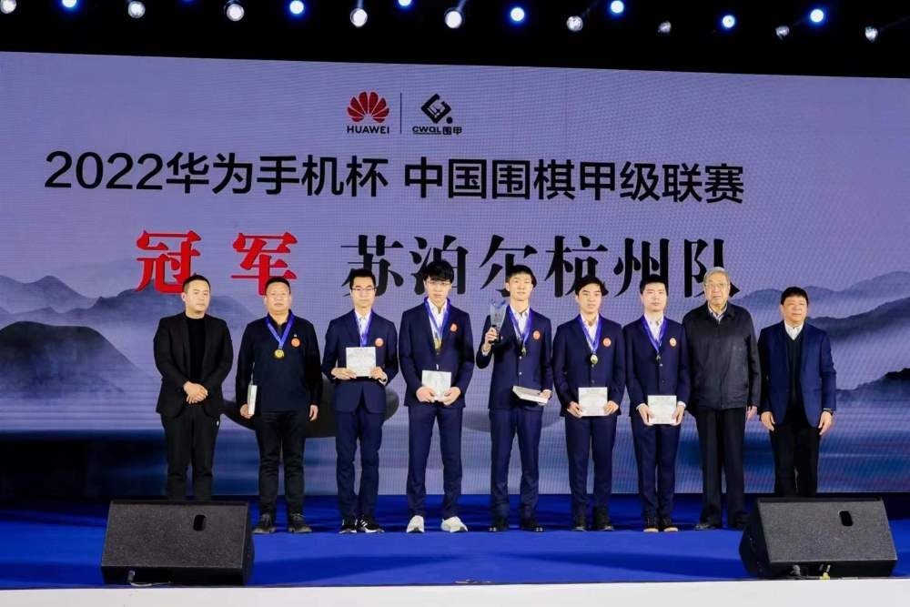 蘇泊爾杭州隊在2022華為手機杯中國圍棋甲級聯賽頒獎儀式上。
