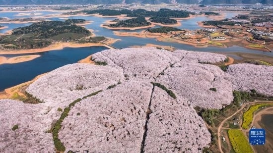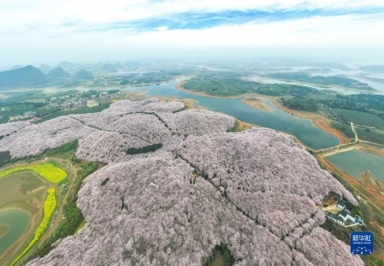 近日,貴州省貴安新區(qū)櫻花園內(nèi)的2.4萬畝櫻花競相綻放,如雪似霞,吸引游客前來賞花觀光。