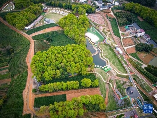 這是3月29日拍攝的諸暨市楓橋鎮(zhèn)陽(yáng)春村陽(yáng)春山月游樂度假村(無人機(jī)照片)。當(dāng)?shù)赝ㄟ^閑置荒山土地流轉(zhuǎn)發(fā)展鄉(xiāng)村旅游,幫助當(dāng)?shù)卮迕窈痛寮w增收。