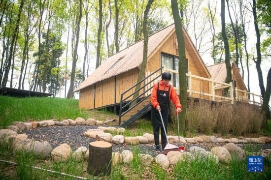 3月29日,諸暨市楓橋鎮(zhèn)陽(yáng)春村村民在陽(yáng)春山月游樂度假村內(nèi)工作。當(dāng)?shù)赝ㄟ^閑置荒山土地流轉(zhuǎn)發(fā)展鄉(xiāng)村旅游,幫助陽(yáng)春村60名村民實(shí)現(xiàn)在家門口就業(yè)增收。