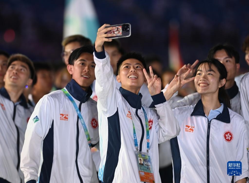 7月28日,中國香港大學(xué)生體育代表團(tuán)在開幕式上入場。