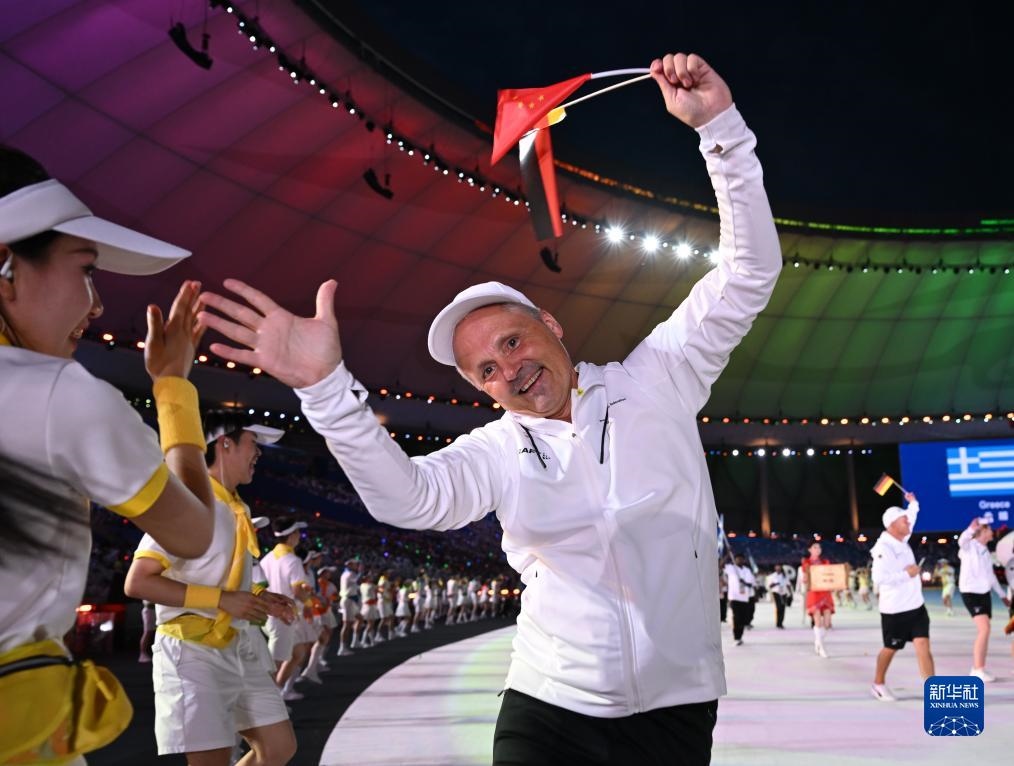 7月28日,中國大學(xué)生體育代表團(tuán)在開幕式上入場。