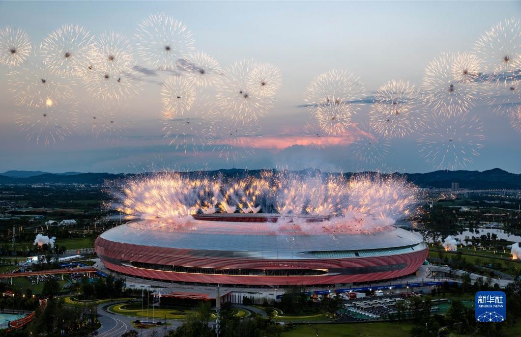 當(dāng)晚,第31屆世界大學(xué)生夏季運(yùn)動會開幕式在成都東安湖體育公園主體育場舉行。