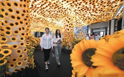 觀眾在天津數(shù)字藝術(shù)博物館全景數(shù)字藝術(shù)互動大展預(yù)展上參觀。新華社記者 孫凡越攝
