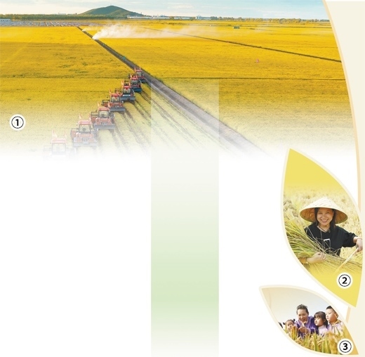 圖①:黑龍江省佳木斯市北大荒千萬(wàn)畝水稻開(kāi)鐮。國(guó) 徽攝(影像中國(guó)) 圖②:河北省唐山市水稻喜獲豐收。朱大勇攝(人民視覺(jué)) 圖③:山東省臨沂市沂南縣大莊鎮(zhèn)翔宇幼兒園的小朋友在稻田聽(tīng)老師講解水稻種植知識(shí)。杜昱葆攝(人民視覺(jué))