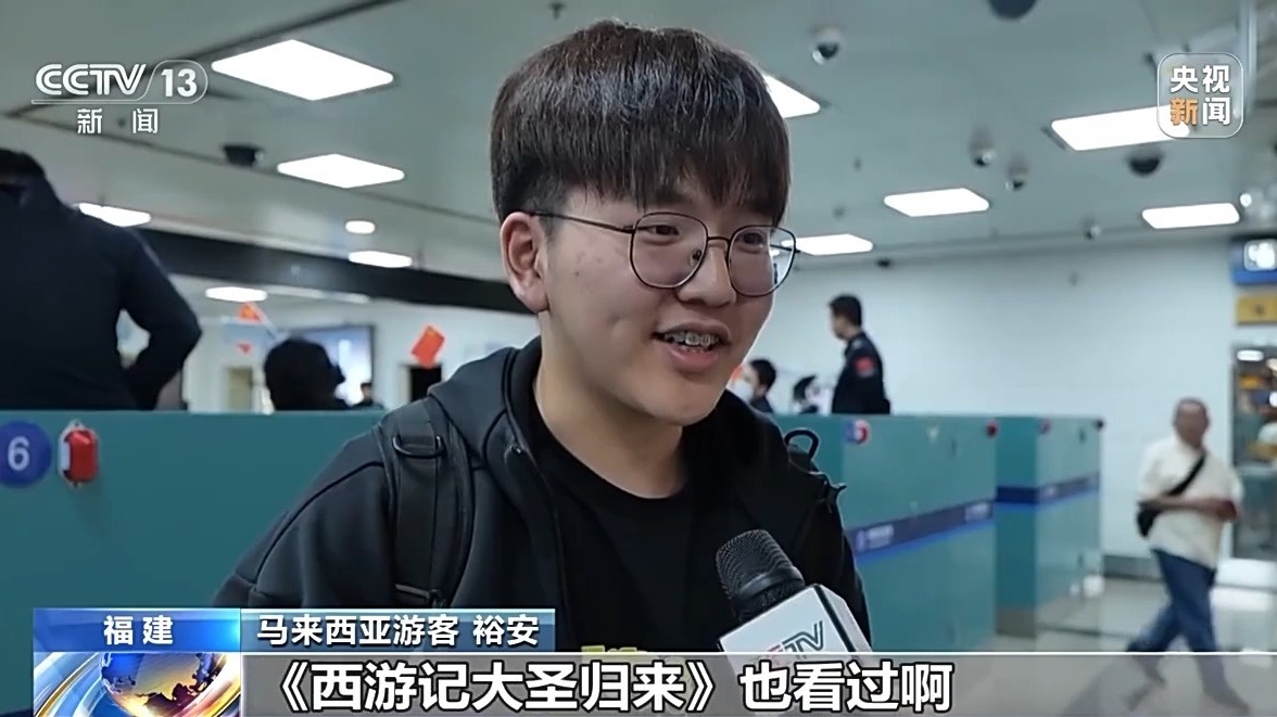 馬來西亞游客 裕安:第一集的《哪吒》我有看過,《西游記大圣歸來》也看過啊,就很喜歡它們的特效之類,《黑神話悟空》也打完了。(總臺(tái)央視記者 劉小月 廣東站 福建站)