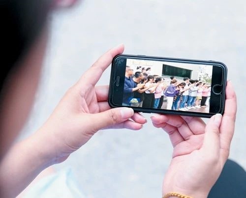 市民們用手機(jī)及時(shí)觀看新聞聯(lián)播。