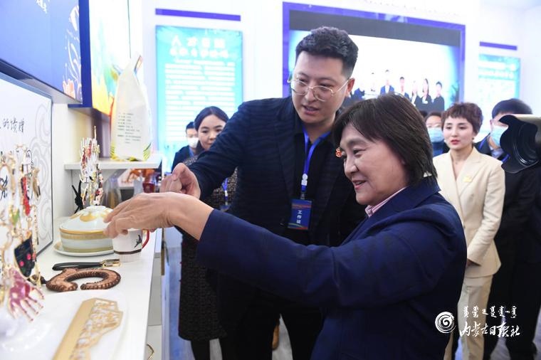 10月15日,自治區(qū)黨委副書記、自治區(qū)主席布小林參觀自治區(qū)“雙創(chuàng)”成果展。內(nèi)蒙古日報(bào)記者 韓卿立攝