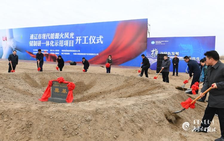 11月9日上午,通遼市現代能源“火風光儲制研”一體化示范項目在通遼市開魯縣東風鎮(zhèn)開工建設。內蒙古日報記者 金泉 攝