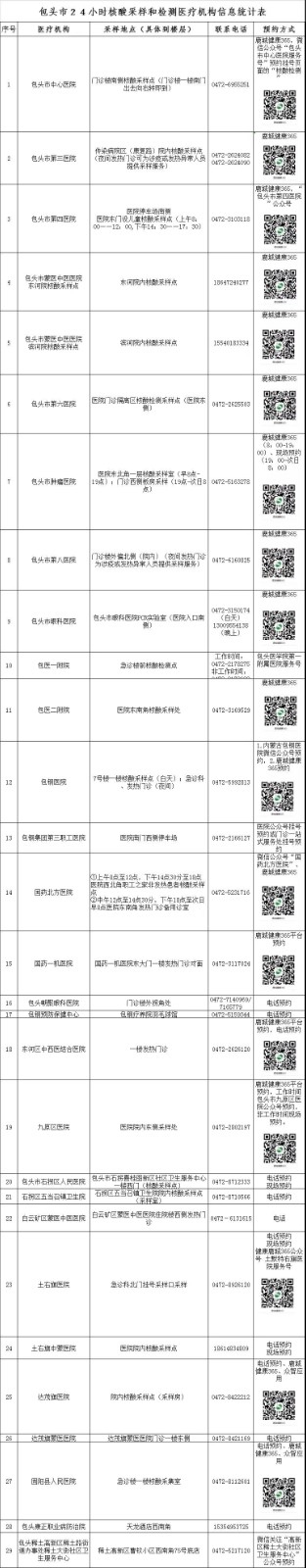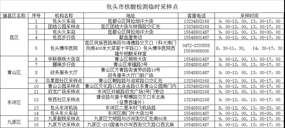 相關(guān)公示:包頭市24小時(shí)核酸采樣檢測機(jī)構(gòu)和臨時(shí)采樣點(diǎn)公示