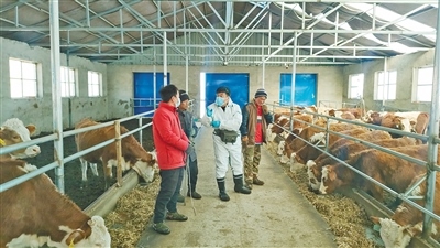 興安盟科技特派員王強(qiáng)(右二)對(duì)養(yǎng)殖戶進(jìn)行現(xiàn)場(chǎng)指導(dǎo)。