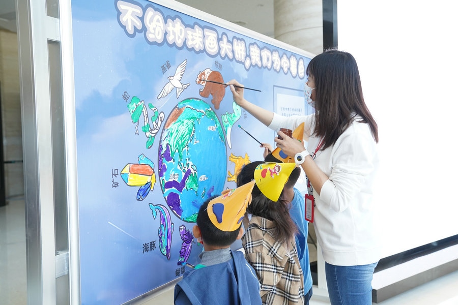 現(xiàn)場開展了“大自然在說話”“恐龍與我們,兩代地球居民的長談”“不給地球畫大餅,我們?yōu)樗钡纫幌盗兄黝}科普活動。在“為地球著色”活動中,參與者每人一筆為地球涂上“他”眼中地球的顏色,定格最美地球畫面;在“大自然在說話”活動中,向公眾免費(fèi)開放的《生物大滅絕》科普課堂為聽眾講述了在地球生命演化過程中動物、植物的出現(xiàn)、五次生物大滅絕等自然知識;在“恐龍與我們,兩代地球居民的長談”活動中,參觀者通過體驗(yàn)在放大鏡下修復(fù)三葉蟲、恐龍化石等活動了解古生物發(fā)掘、修復(fù)知識。