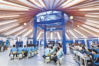 9月21日,120名中學(xué)生在阿拉善盟額濟(jì)納旗蒙古包地面課堂與空間站“同頻共振”,聆聽來自太空的聲音。內(nèi)蒙古日報社融媒體記者 王磊 攝