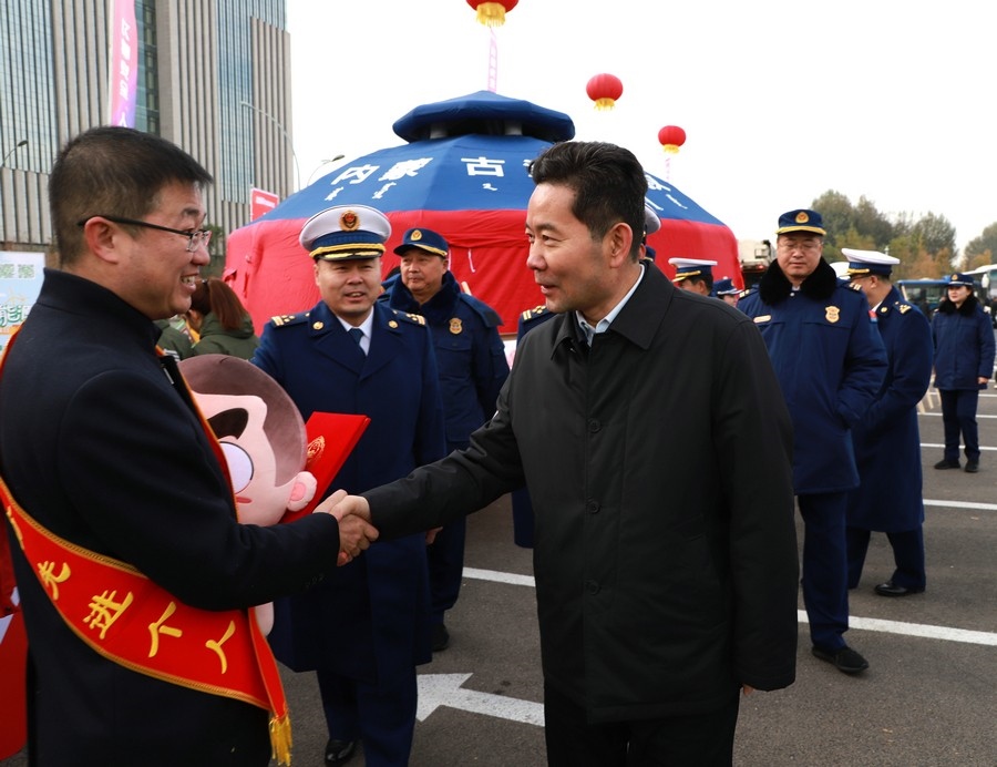 儀式上,內(nèi)蒙古自治區(qū)消防救援總隊(duì)總隊(duì)長(zhǎng)李俊豐宣布“2023年度內(nèi)蒙古自治區(qū)消防宣傳月活動(dòng)啟動(dòng)”,消防主題公交車、共享單車、外賣車等“流動(dòng)消防宣傳員”紛紛“上崗”,“消防+燃油”“消防+燃?xì)狻薄跋?用電”“消防+電動(dòng)車”等主題宣傳集市火熱“開市”,2023年度內(nèi)蒙古自治區(qū)消防宣傳月活動(dòng)正式拉開帷幕。