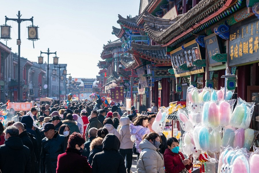 春節(jié)假期呼和浩特大召塞上老街人流如織 丁根厚 攝