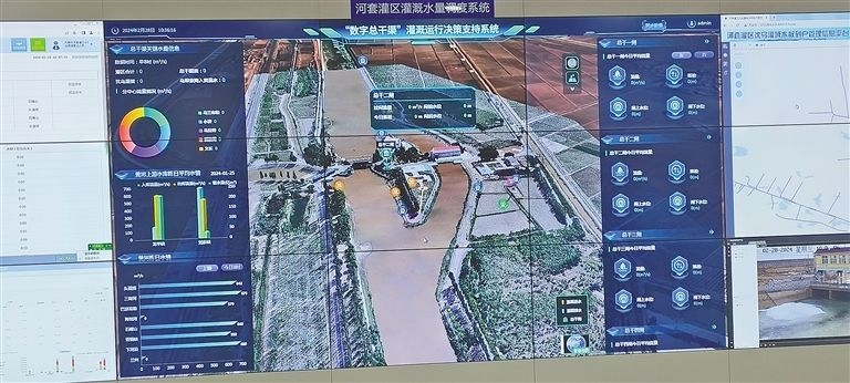 在河套灌區(qū)水量信息化監(jiān)測中心50米長的數(shù)字屏幕上,“數(shù)字總干渠”灌溉運(yùn)行決策支持系統(tǒng)只是其中一項內(nèi)容,在這個數(shù)字屏幕上,還能看到黃河三盛公水利樞紐工程的實(shí)時畫面、河套灌區(qū)渠溝道樞紐工程實(shí)時運(yùn)行現(xiàn)狀、總干渠5座樞紐工程運(yùn)行情況視頻、河套灌區(qū)水量調(diào)度系統(tǒng)、內(nèi)蒙古黃河實(shí)時視頻監(jiān)控等各種實(shí)時監(jiān)控畫面和實(shí)時數(shù)據(jù),先進(jìn)的科技讓人震撼。