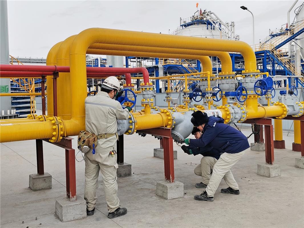 工作人員正在現(xiàn)場操作天然氣管道過濾器濾網(wǎng)。