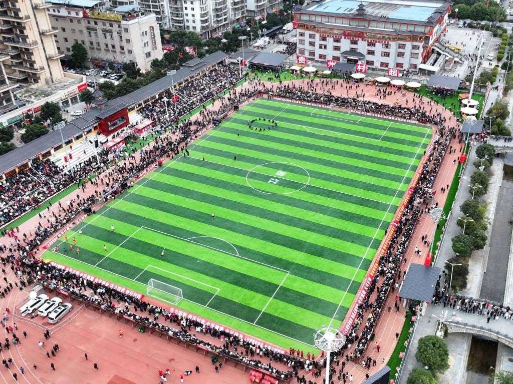 2月3日,觀眾在“村超”賽場等待活動(dòng)開始(無人機(jī)照片)。新華社記者劉續(xù)攝