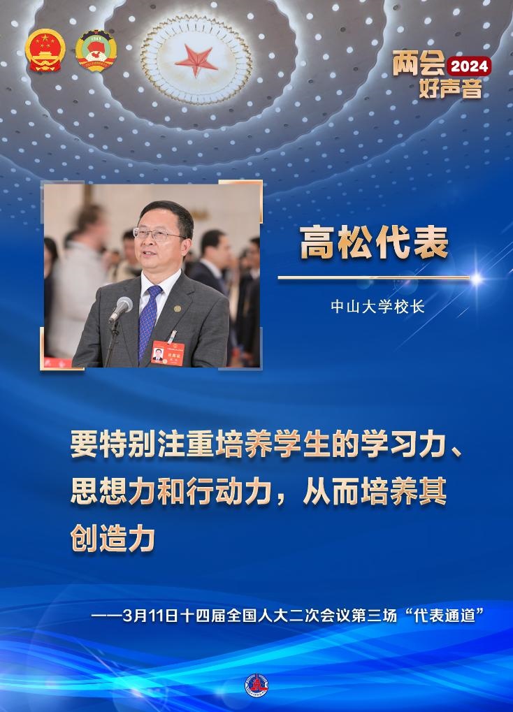 青年人是未來創(chuàng)新的希望。對于如何培養(yǎng)學(xué)生的創(chuàng)造力,中山大學(xué)校長高松代表給出了他的答案:要特別注重培養(yǎng)學(xué)生的學(xué)習(xí)力、思想力和行動力,從而培養(yǎng)其創(chuàng)造力。