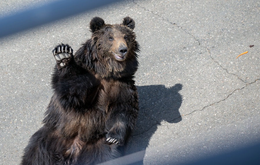 動物園里向游客打招呼的棕熊