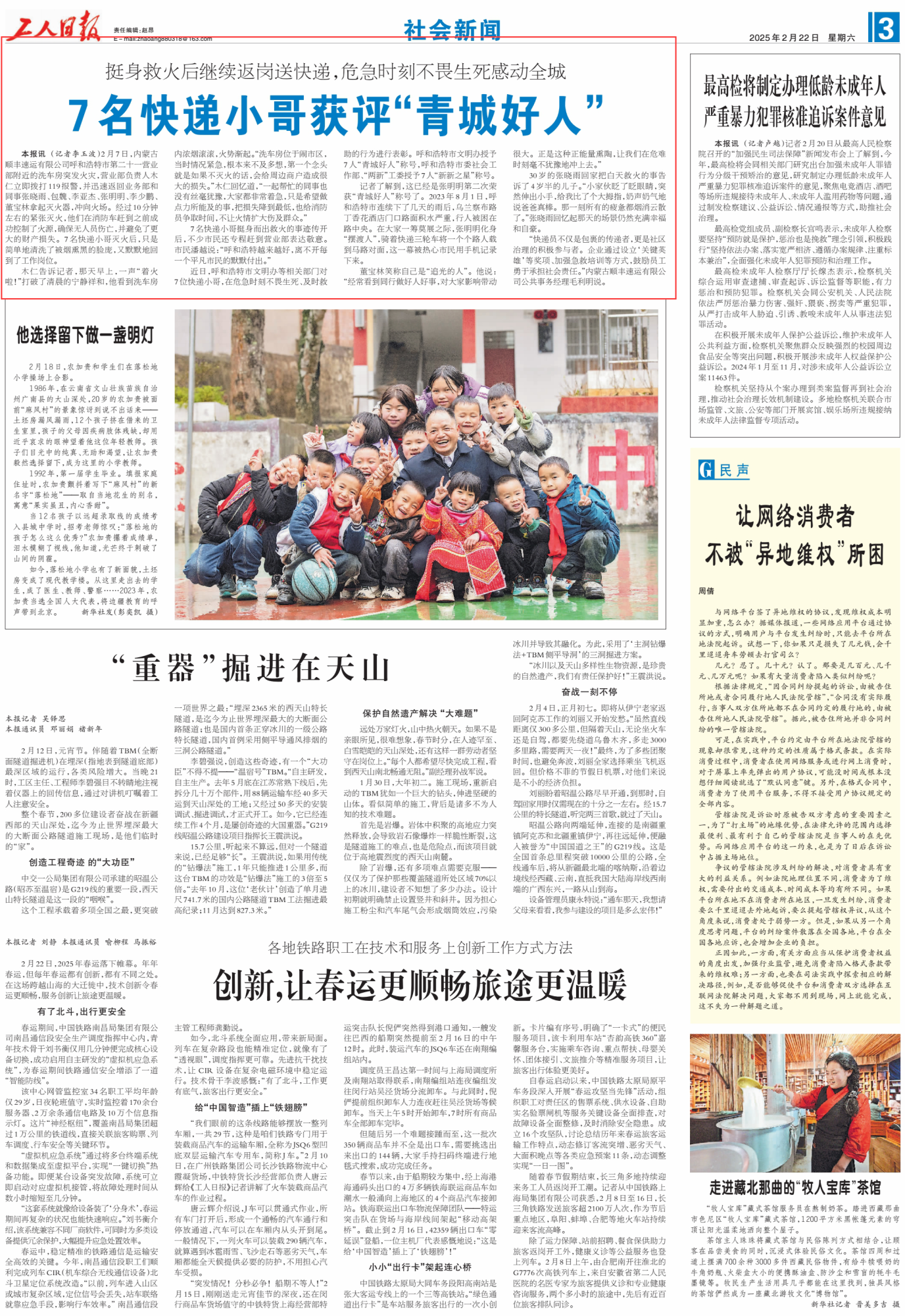 2025年2月22日,《工人日報》第3版刊發(fā)題為《挺身救火后繼續(xù)返崗送快遞,危急時刻不畏生死感動全城 7名快遞小哥獲評“青城好人”》的文章,報道了內(nèi)蒙古自治區(qū)呼和浩特市7位快遞小哥挺身救火,在消防車趕到之前成功控制了火源,確保無人員傷亡,并避免了更大的財產(chǎn)損失。