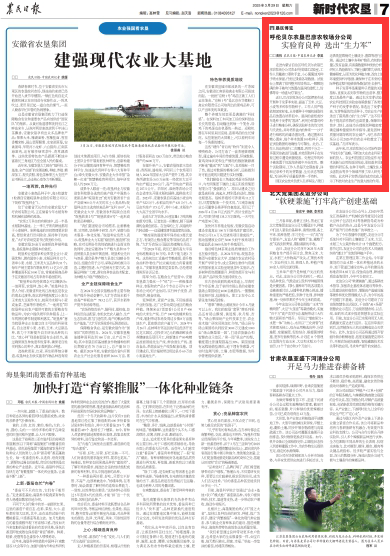 2025年3月29日,《農(nóng)民日報(bào)》第7版刊發(fā)題為《呼倫貝爾農(nóng)墾巴彥農(nóng)牧場分公司實(shí)驗(yàn)育良種 選出“生力軍”》的文章,報(bào)道了近年來,巴彥農(nóng)牧場分公司始終堅(jiān)持“科技興農(nóng)”戰(zhàn)略,不斷加大在農(nóng)業(yè)科研方面的投入。農(nóng)業(yè)科技園區(qū)實(shí)驗(yàn)室作為技術(shù)創(chuàng)新與應(yīng)用的前沿陣地,承擔(dān)著多項(xiàng)重要的科研任務(wù),在種子培育、土壤改良、病蟲害防治等多個(gè)領(lǐng)域開展了深入研究與實(shí)踐。