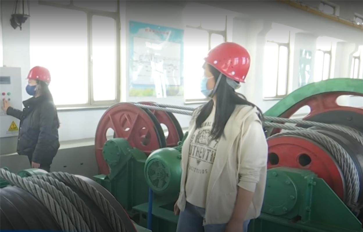 工作人員正在收起黃河三盛公水利樞紐工程北總干渠閘門。