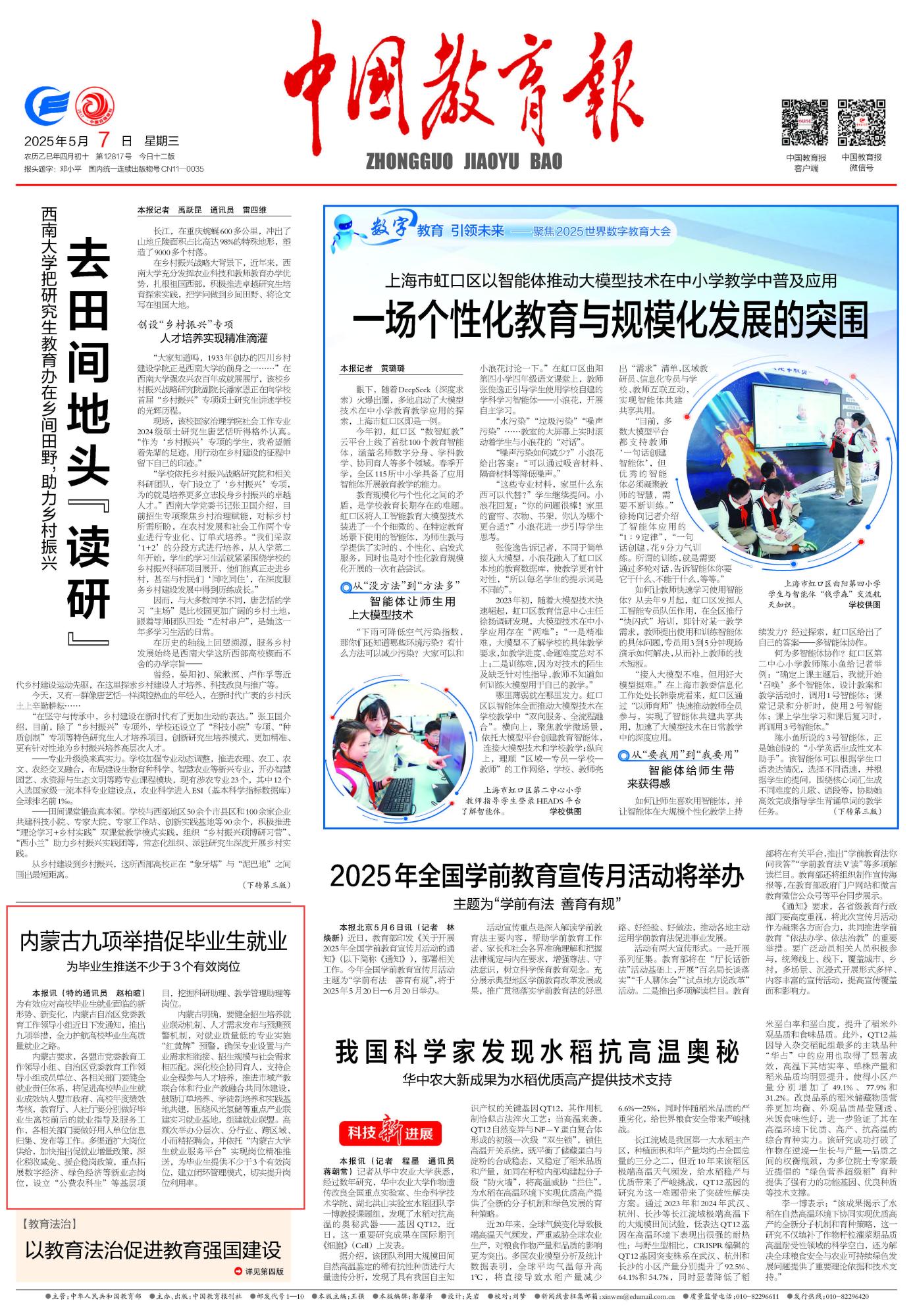 2025年5月7日《中國教育報》第1版刊發(fā)了《內(nèi)蒙古九項舉措促畢業(yè)生就業(yè) 為畢業(yè)生推送不少于3個有效崗位》的文章,報道了為有效應(yīng)對高校畢業(yè)生就業(yè)面臨的新形勢、新變化,內(nèi)蒙古自治區(qū)黨委教育工作領(lǐng)導(dǎo)小組近日下發(fā)通知,推出九項舉措,全力護航高校畢業(yè)生高質(zhì)量就業(yè)之路。