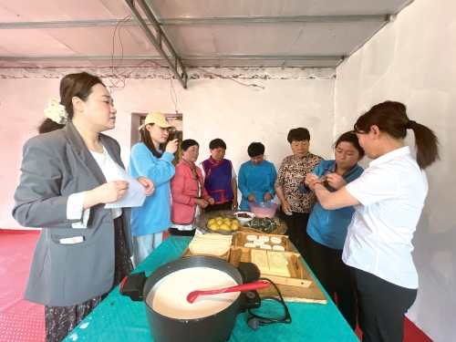 2025年端午節(jié)前,巴仁哲里木鎮(zhèn)宣傳委員、宣傳干事在寶日根嘎查拍攝蒙古族和漢族群眾一起包粽子、制作奶皮子的畫(huà)面?!∞r(nóng)民日?qǐng)?bào)·中國(guó)農(nóng)網(wǎng)記者 劉杰 攝