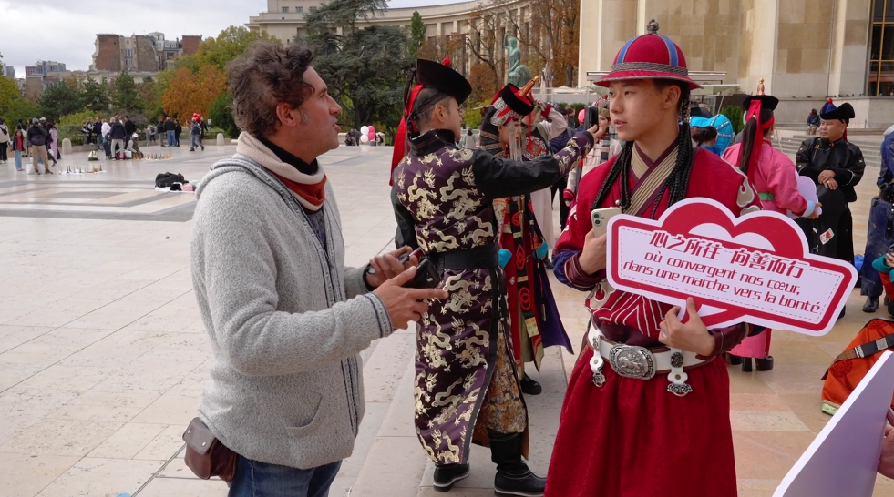 在法國(guó)巴黎市的夏約宮廣場(chǎng)、埃菲爾鐵塔、香榭麗舍大街、巴黎圣母院、凱旋門、國(guó)際大學(xué)城,比利時(shí)布魯塞爾市大廣場(chǎng)、藝術(shù)山等地,阿拉善的烏蘭牧騎演員開(kāi)啟了一場(chǎng)場(chǎng)融合蒙古族華服走秀與快閃歌舞表演,“阿拉善在哪里?”“這服裝太酷了!”“怎么有萬(wàn)馬奔騰的感覺(jué)!”“想去看一看!”“這沙漠也太壯觀了!”快閃路演吸引了法國(guó)、比利時(shí)以及來(lái)自世界各地的游客駐足觀看,喝彩不斷,沉醉其中。