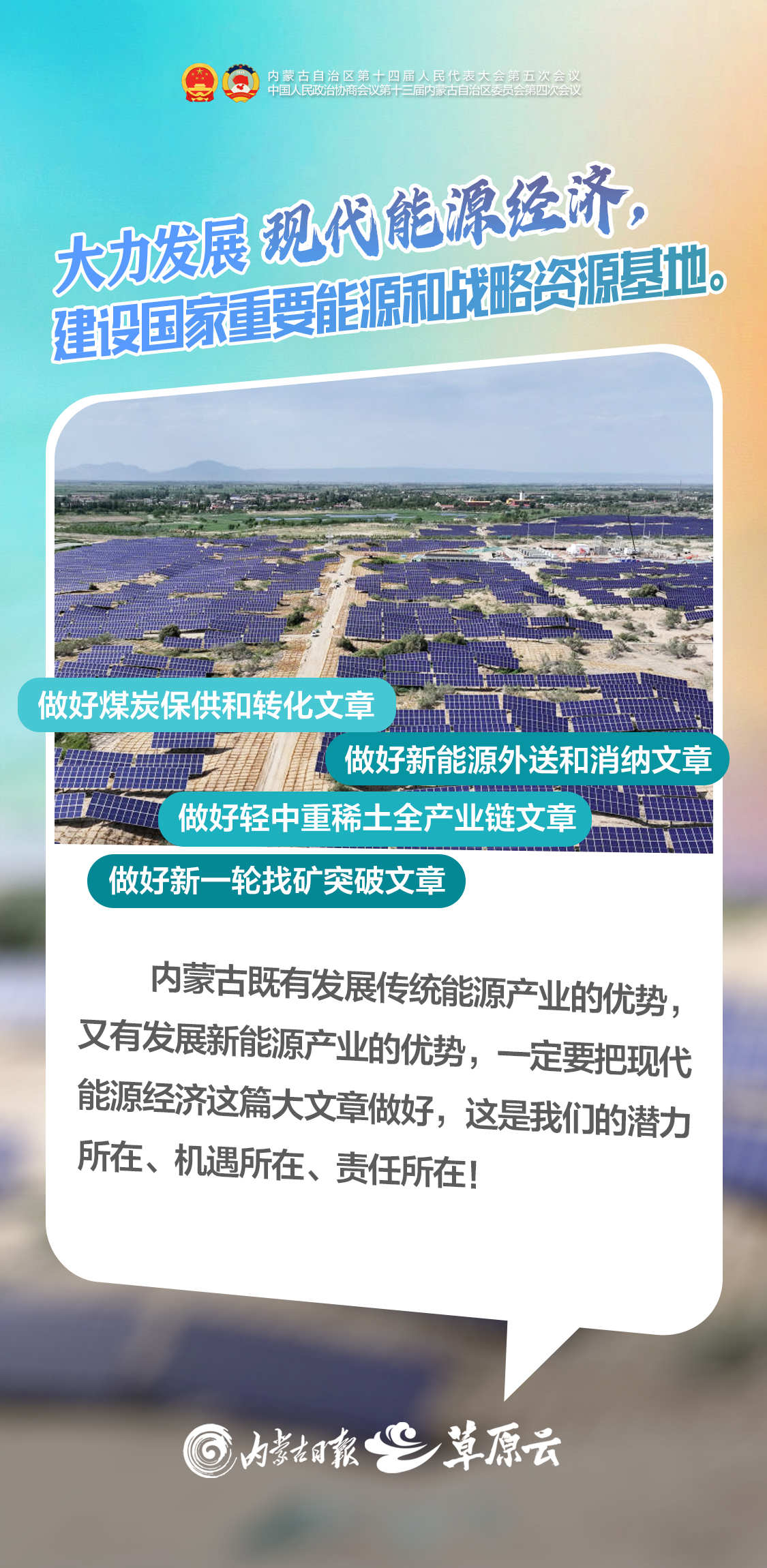 建設(shè)“兩個屏障”、“兩個基地”、“一個橋頭堡”,是習(xí)近平總書記著眼全國發(fā)展大局賦予內(nèi)蒙古的戰(zhàn)略定位和使命任務(wù),是自治區(qū)全面推進(jìn)中國式現(xiàn)代化的根本遵循。