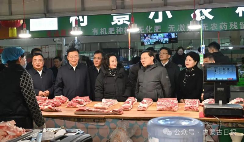 2月13日,自治區(qū)黨委書記、人大常委會(huì)主任王偉中走進(jìn)賽罕區(qū)寶全農(nóng)貿(mào)市場(chǎng),了解商品產(chǎn)地、存儲(chǔ)、價(jià)格、運(yùn)銷等情況。草原云·內(nèi)蒙古新聞網(wǎng)記者 馬建兵 攝