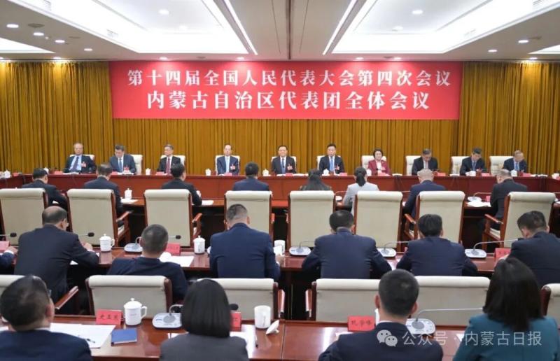 按照大會統(tǒng)一安排,3月3日,出席十四屆全國人大四次會議的內(nèi)蒙古代表團在駐地召開全體會議。