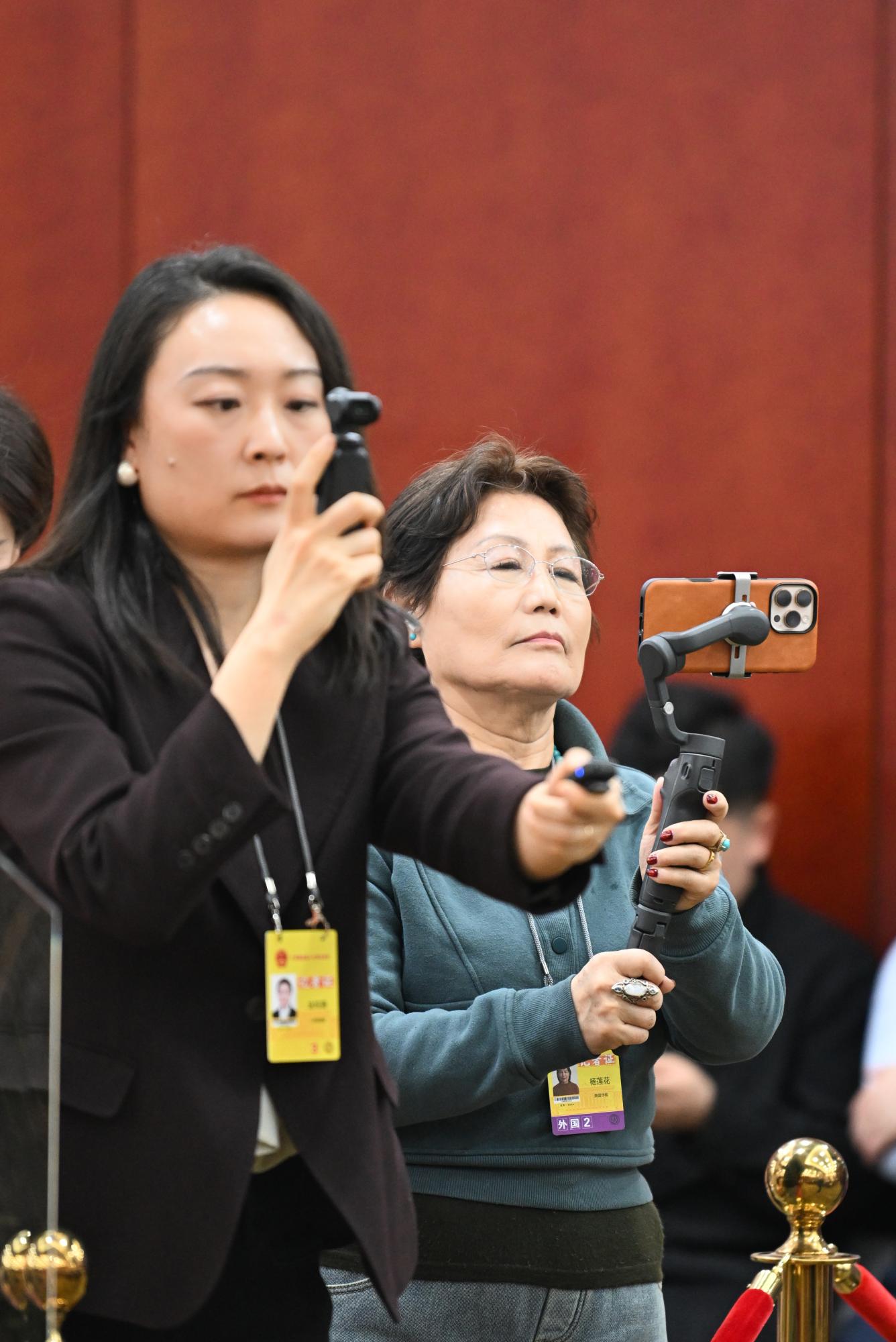 記者用手機錄制代表發(fā)言。草原云記者 馬建兵 攝