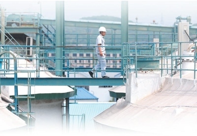 工作人員在位于遼寧的中央儲備糧營口直屬庫淺圓倉頂部巡查。新華社記者 姚劍鋒攝