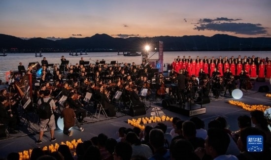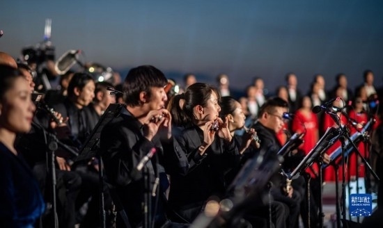 伴著晚霞,第七屆聶耳音樂周昆明分會(huì)場(chǎng)開幕式在滇池畔舉行(7月17日攝)。