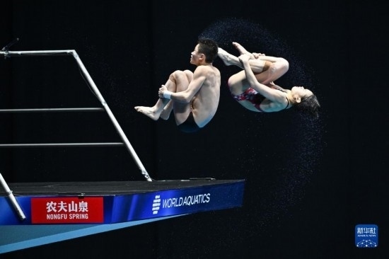 當(dāng)日,在2023年福岡世界游泳錦標(biāo)賽跳水混雙10米臺(tái)決賽中,中國組合王飛龍/張家齊以總分339.54分的成績奪得冠軍。