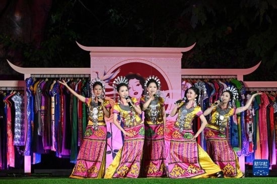10月22日在海南省五指山市拍攝的民族時(shí)裝“村秀”重陽(yáng)特別專(zhuān)場(chǎng)活動(dòng)現(xiàn)場(chǎng)。