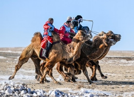 牧民畢力格圖看賽車比賽過足了眼癮,在參加完賽駱駝比賽后得出一個結(jié)論:“駱駝就相當(dāng)于牧民的越野車,騎著駱駝在雪原中奔跑,比賽車還刺激?!?/p>