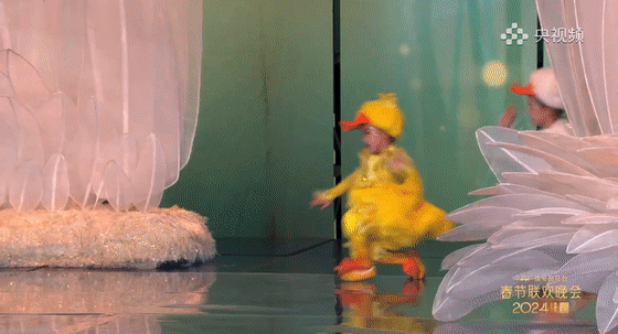 每年春晚都少不了兒童節(jié)目,導(dǎo)演組堅(jiān)持兒童舞蹈要從孩子的眼睛看世界,必須符合孩子身體的表達(dá)。這些“小天鵝們”正是來自駱賓王的家鄉(xiāng)義烏,他們用自己的理解展現(xiàn)了《詠鵝》中“白鵝戲水圖”的獨(dú)特韻味。“跪游”的經(jīng)典動(dòng)作把“紅掌撥清波”刻畫得惟妙惟肖,“翹屁股”更是萌翻了觀眾,左搖右擺的“矮子步”還是來自孩子們的鬼馬“創(chuàng)作”,整個(gè)舞蹈充滿了童趣純真。