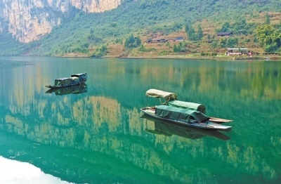 重慶酉陽(yáng)龔灘鎮(zhèn)江面扁舟。段成軍攝(影像中國(guó))