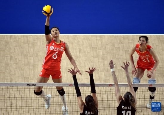 當日,在世界女排聯(lián)賽中國香港站比賽中,中國隊3比2戰(zhàn)勝土耳其隊。
